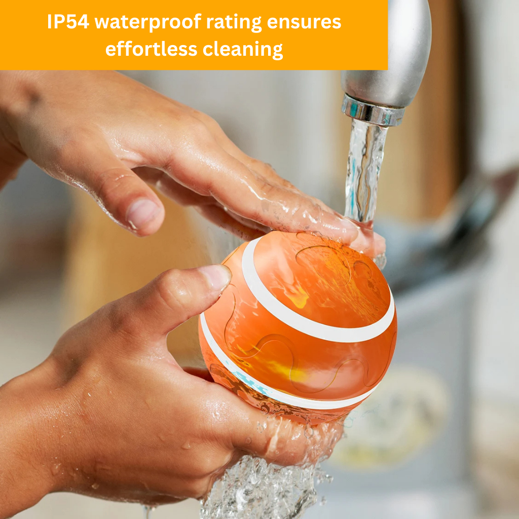 Yes, the active rolling ball is IP54-rated waterproof, meaning it is dustproof and splash-resistant. This makes it perfect for both indoor and outdoor use and easy to clean after a day full of play and fun outside.