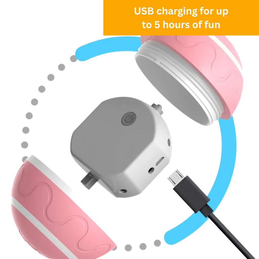 The ball fully charges in just 2 hours using the included USB cable. A full charge provides up to 5 hours of continuous playtime, making it perfect for extended indoor or outdoor play sessions.