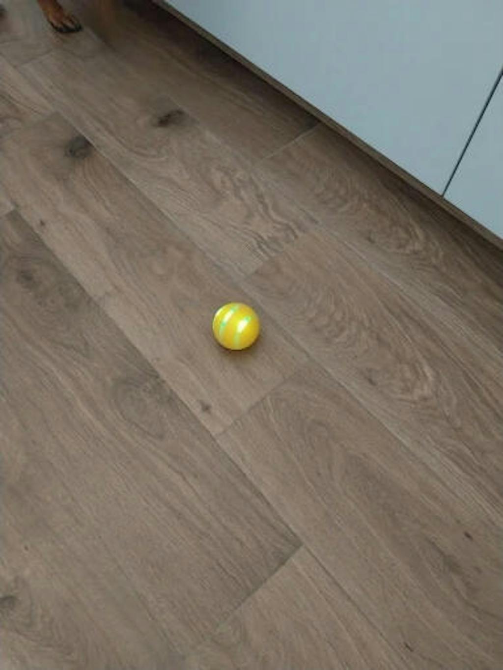 The ball works effectively on wood, tile, or thin carpet.