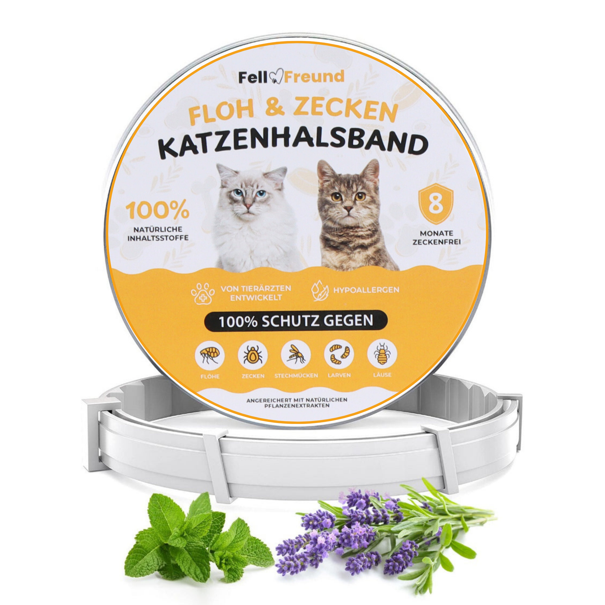 The FellFreund collarprotects your cat against parasites for up to 8 months.