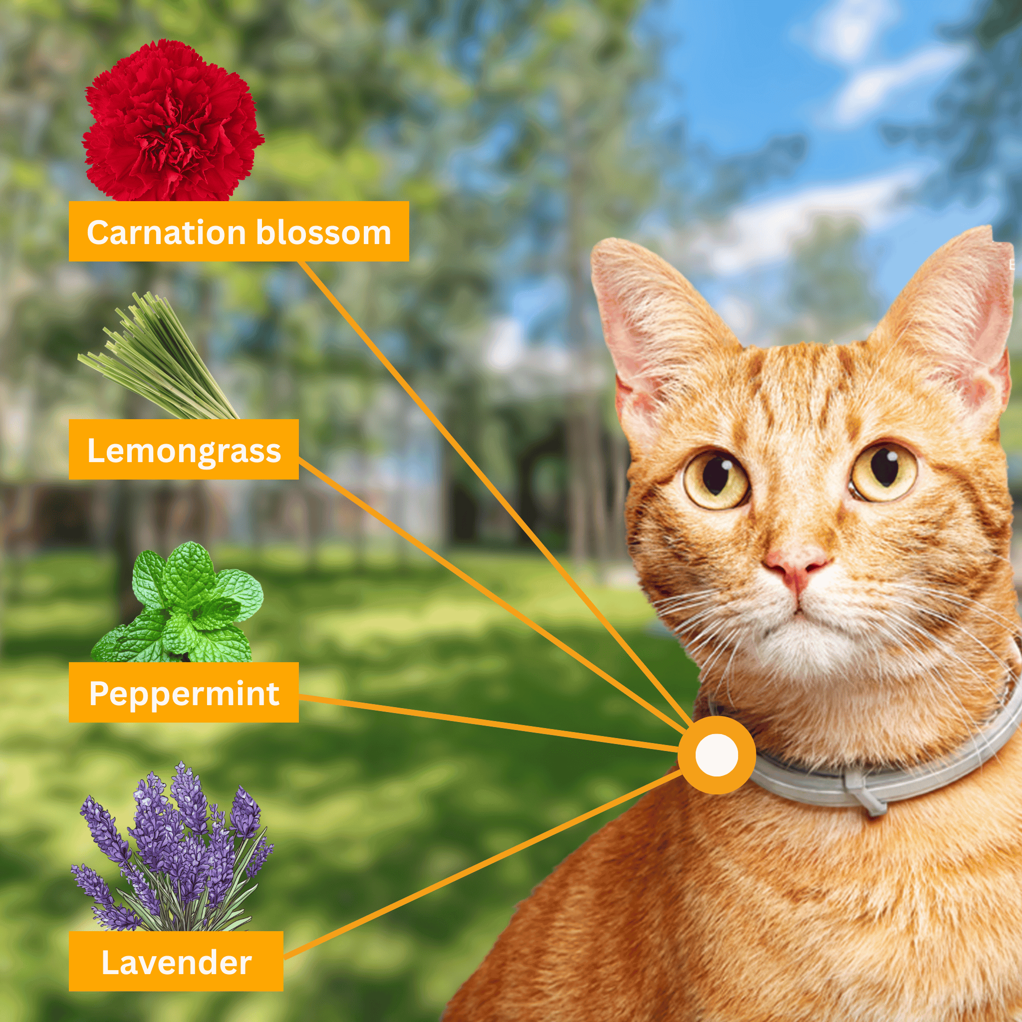 Our collar contains a blend of essential oils—lavender, peppermint, lemongrass, and clove blossom—that naturally repel parasites.