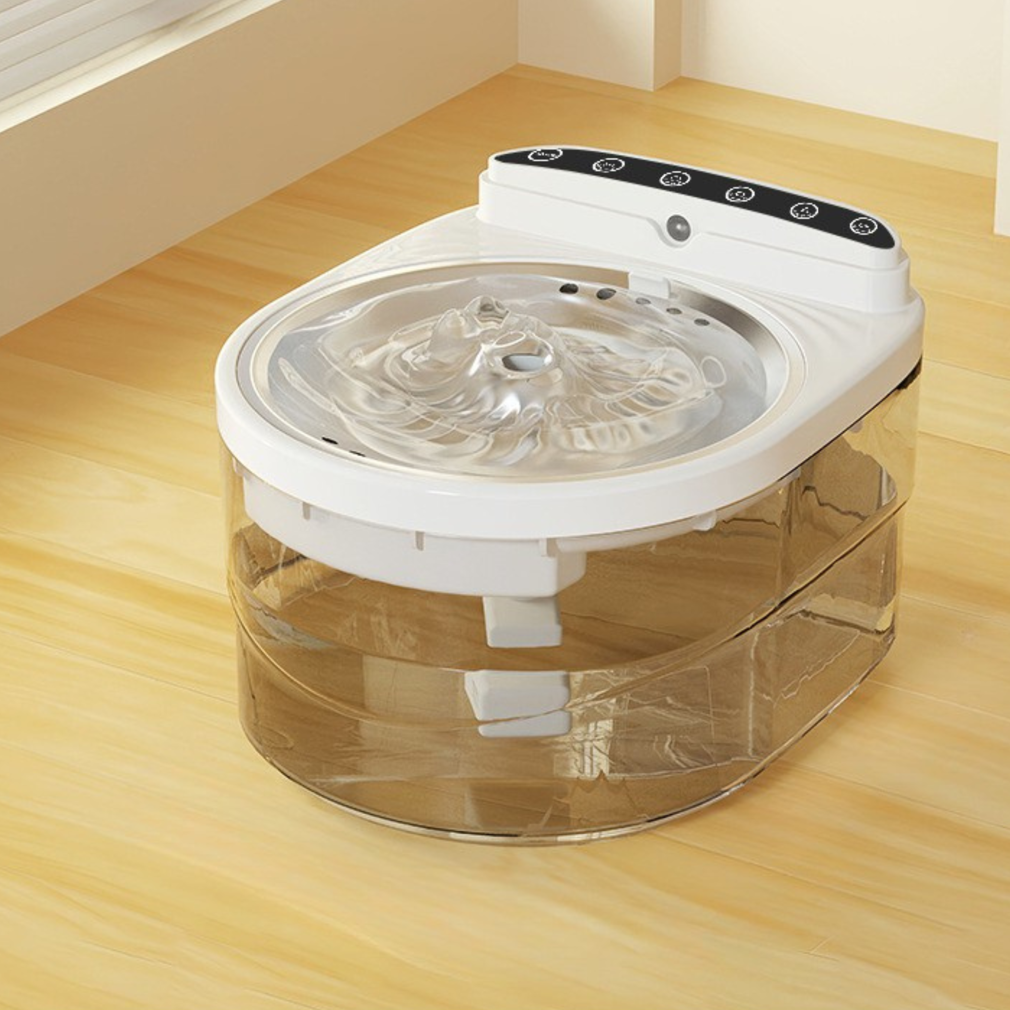 The compact design (22.5 × 19 × 15 cm) fits into any home, making the fountain the perfect hydration solution for any environment.